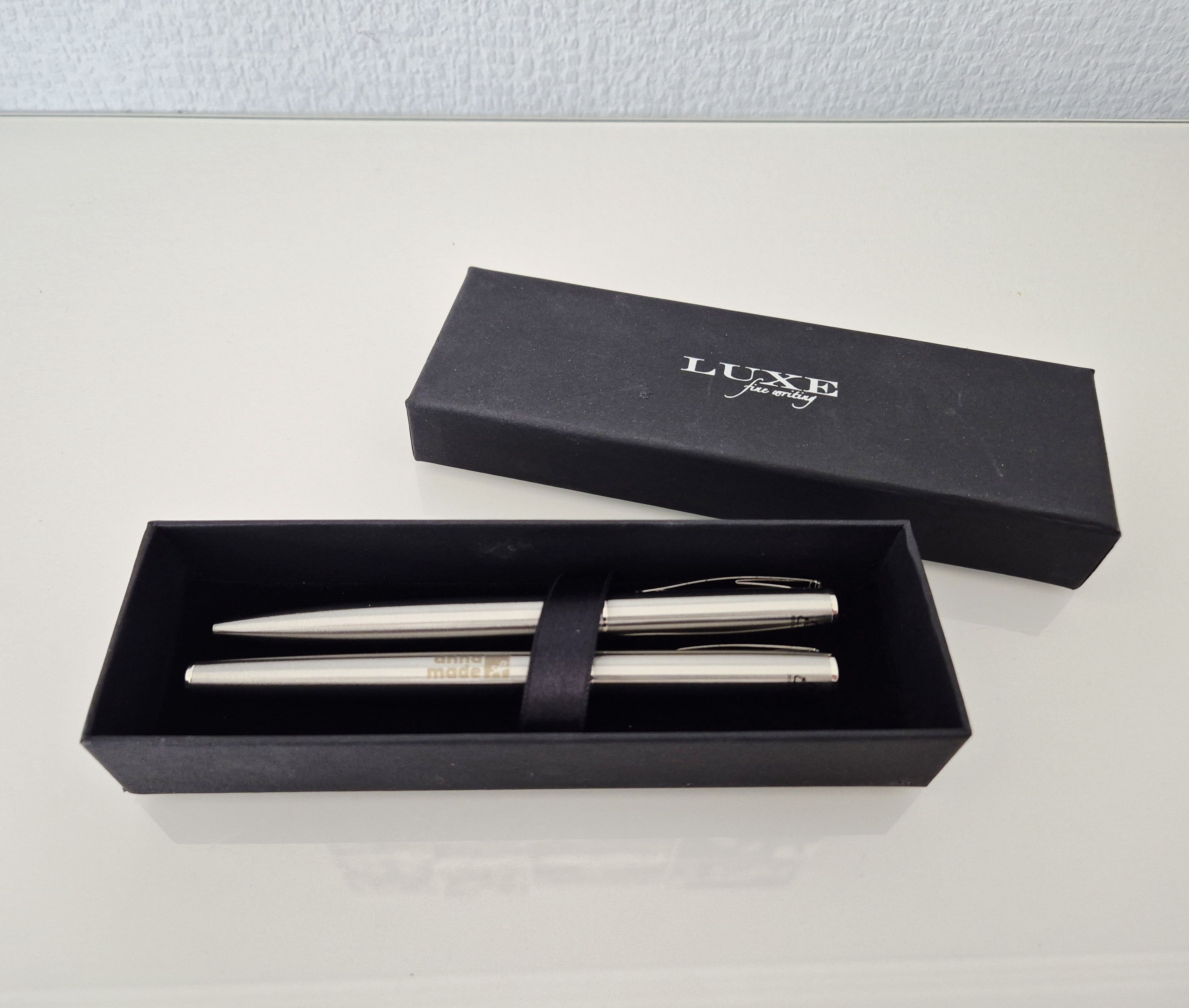 Entdecken Sie das Vergnügen des Schreibens neu mit unserem Kugelschreiber aus Edelstahl, präsentiert in einer Geschenkverpackung, die Ihre Botschaft trägt. Gönnen Sie sich selbst oder Ihren Liebsten dieses außergewöhnliche Set und lassen Sie Ihre Worte mit Stil fließen.