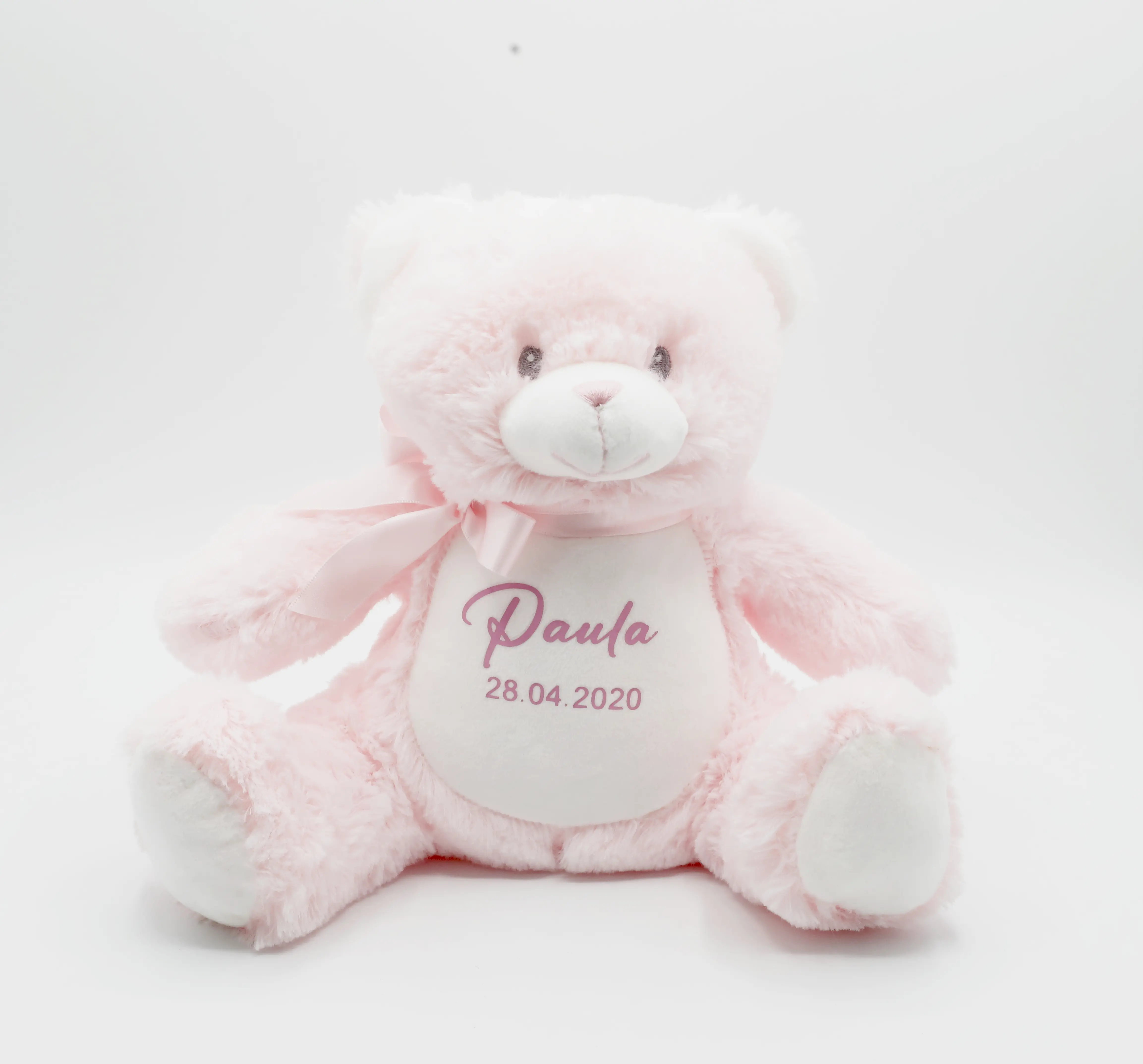bist Du auf der Suche nach einem individuellen Geschenk für dein Baby? Dann bist Du bei uns genau richtig! Teile uns Deinen Wunschtext oder die Daten sowie die Schrift und Druckfarbe mit und wir erstellen Dir dein ganz persönliches Kuscheltier. Es ist ein wunderschönes Erinnerungsstück und ein individuelles Einzelstück. Entweder mit Namen und/oder Geburtsdaten oder einem Wunschspruch. Bitte halte Dich bei einem Spruch kurz, da der Aufdruck sonst zu filigran und zu klein wird.