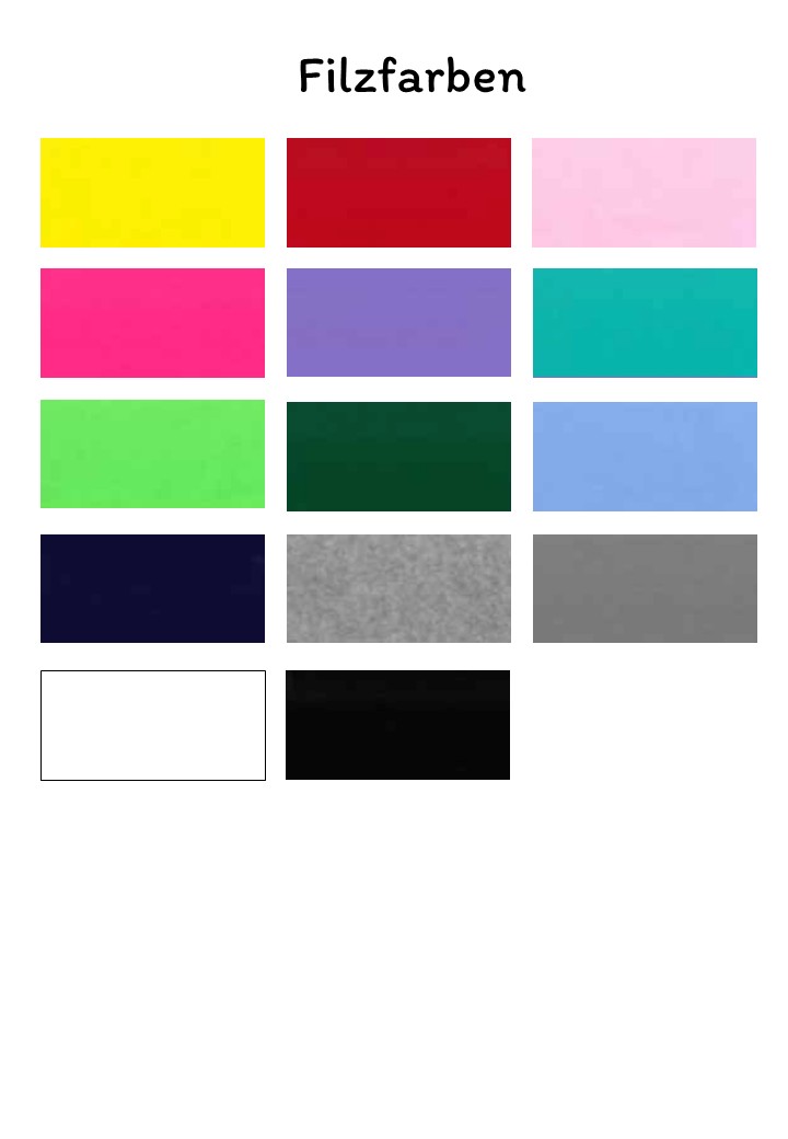 Bitte gebe in der Personalisierung den Namen, die Schrift, Filz- und Garnfarbe an.